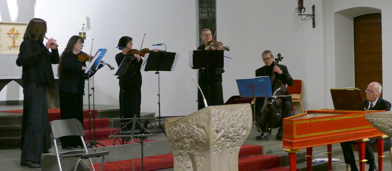Es erklangen außergewöhnliche Kompositionen von Telemann und Vivaldi, in denen der Trompeter Peter Scheerer mit seinem Kollegen aus dem WDR Sinfonieorchester Köln, Jürgen Schuster, verschiedene Bauformen der Trompete präsentiert. Die Flötistinnen Ulrike Friedrich und Beate Huck interpretieren zusammen mit Lisa Henn und Lilia Hägele (Violine), Simona Grasse (Viola) und Robert Nikolayczik (Violoncello) ein Concertino des weitgehend unbekannten Juristen, Diplomaten und Ostindienfahrers Graf Willem van Wassenaer (1692-1766).