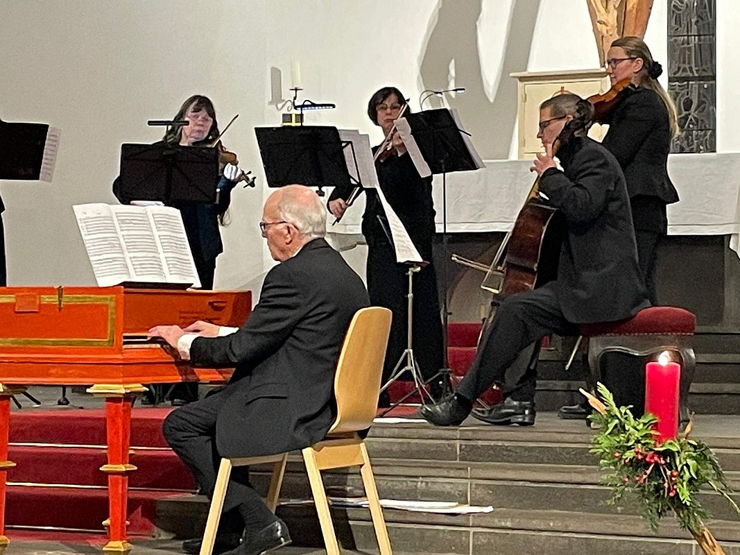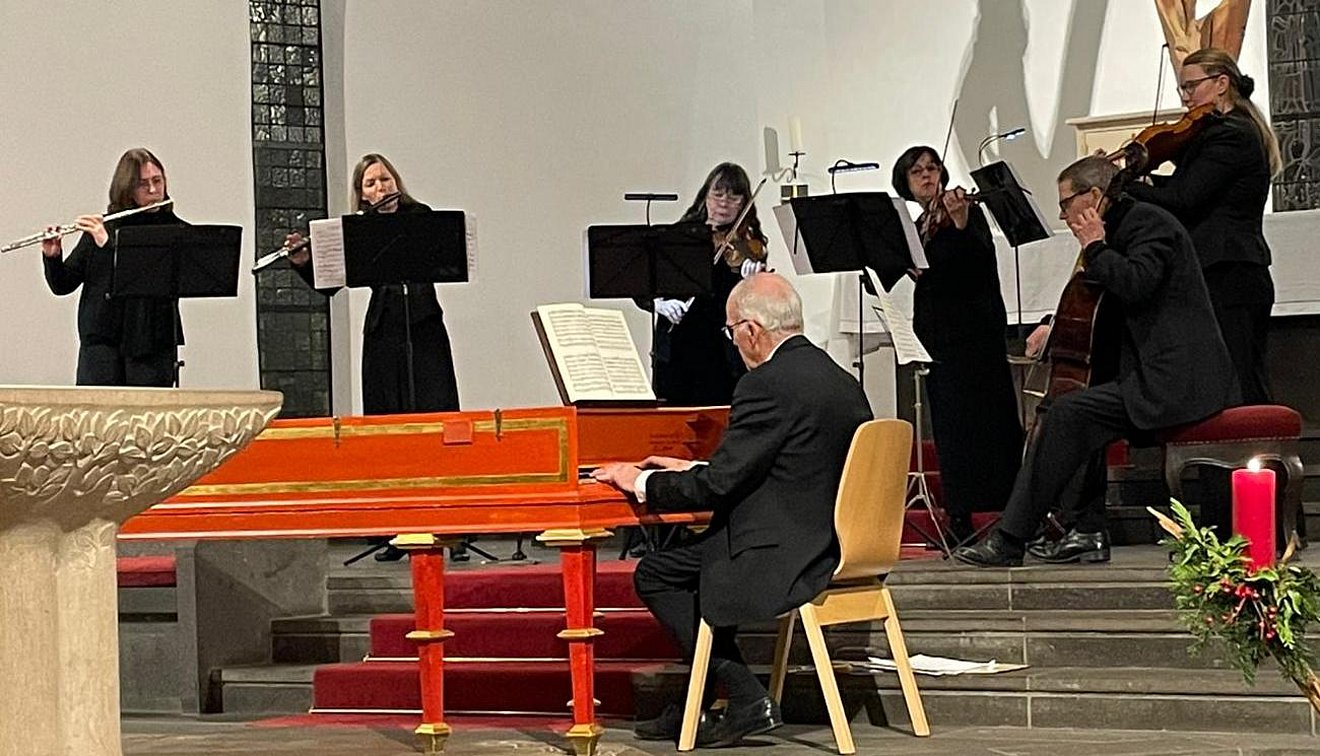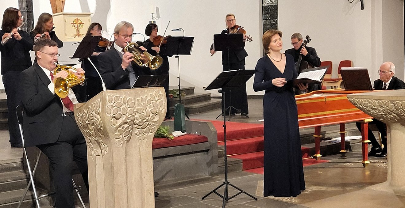 Es war ein ganz besonderes Erlebnis, das die Zuhörer - nach den Liedern zum Advent, brilliant vorgetragen von Claudia Scheiner - in andächtige Stille und bei der Präsentation des Konzerts von Telemann - vor allem durch die überzeugende Mitwirkung von Jürgen Schuster und Peter Scheerer mit ihren Flügelhörnern - in erwartungs- und hoffungsvolle adventliche Stimmung versetzte.